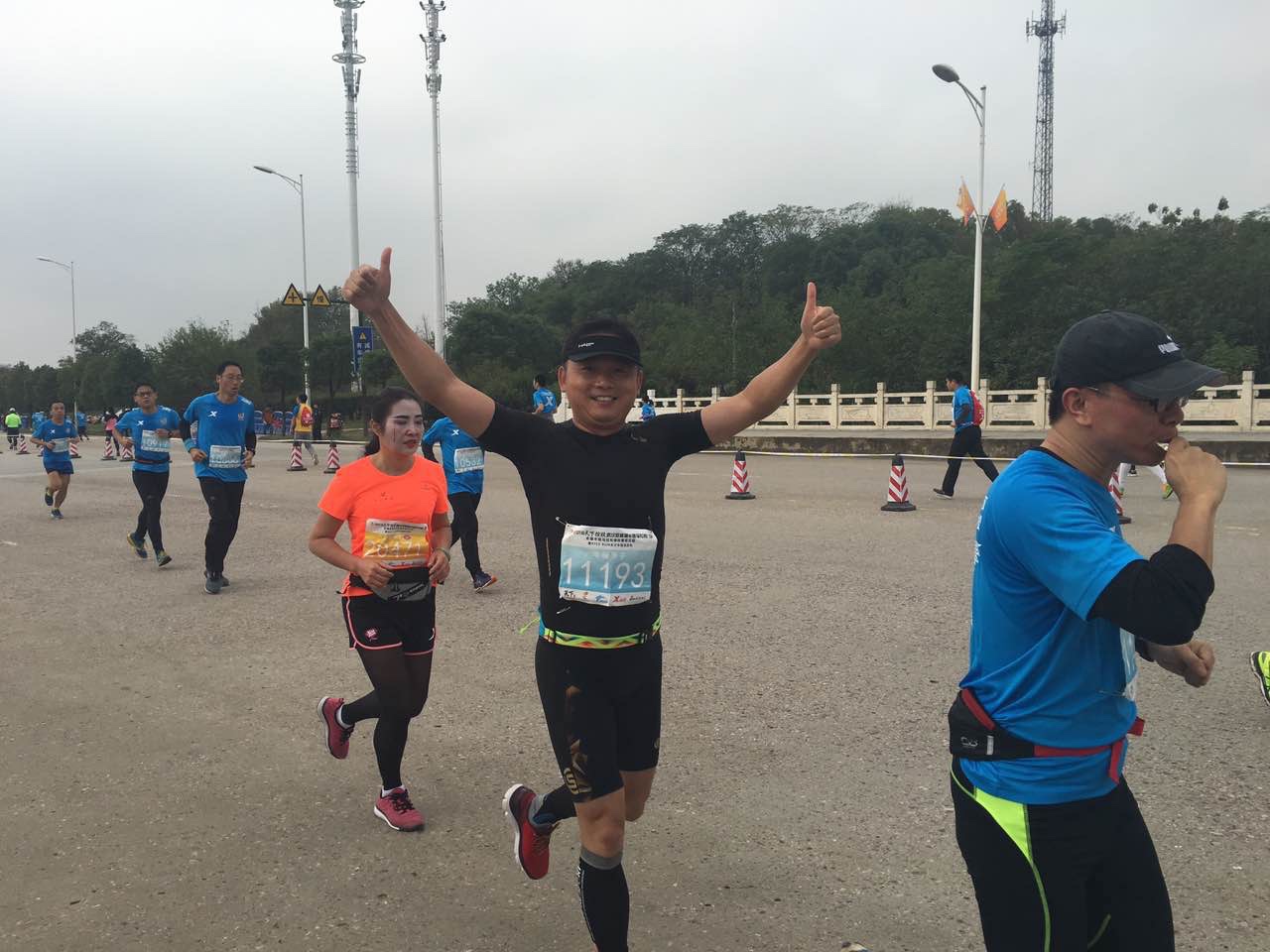 雖然下了一周的雨而且此天氣將會持續(xù)幾天,可是仍然阻擋不了大家參賽的勁頭和熱情,天不亮就早早起床直赴公司大院集合整裝待發(fā),所有參賽人員到齊后乘坐巴士前往比賽主會場提前進(jìn)行拉伸運(yùn)動。我們到達(dá)目的地時天還剛蒙蒙亮,氣溫也很低,但是已經(jīng)聚集了不少參賽人員及后勤保障、治安人員,個個精神抖擻、容光煥發(fā),都期待著順利地跑出好成績!