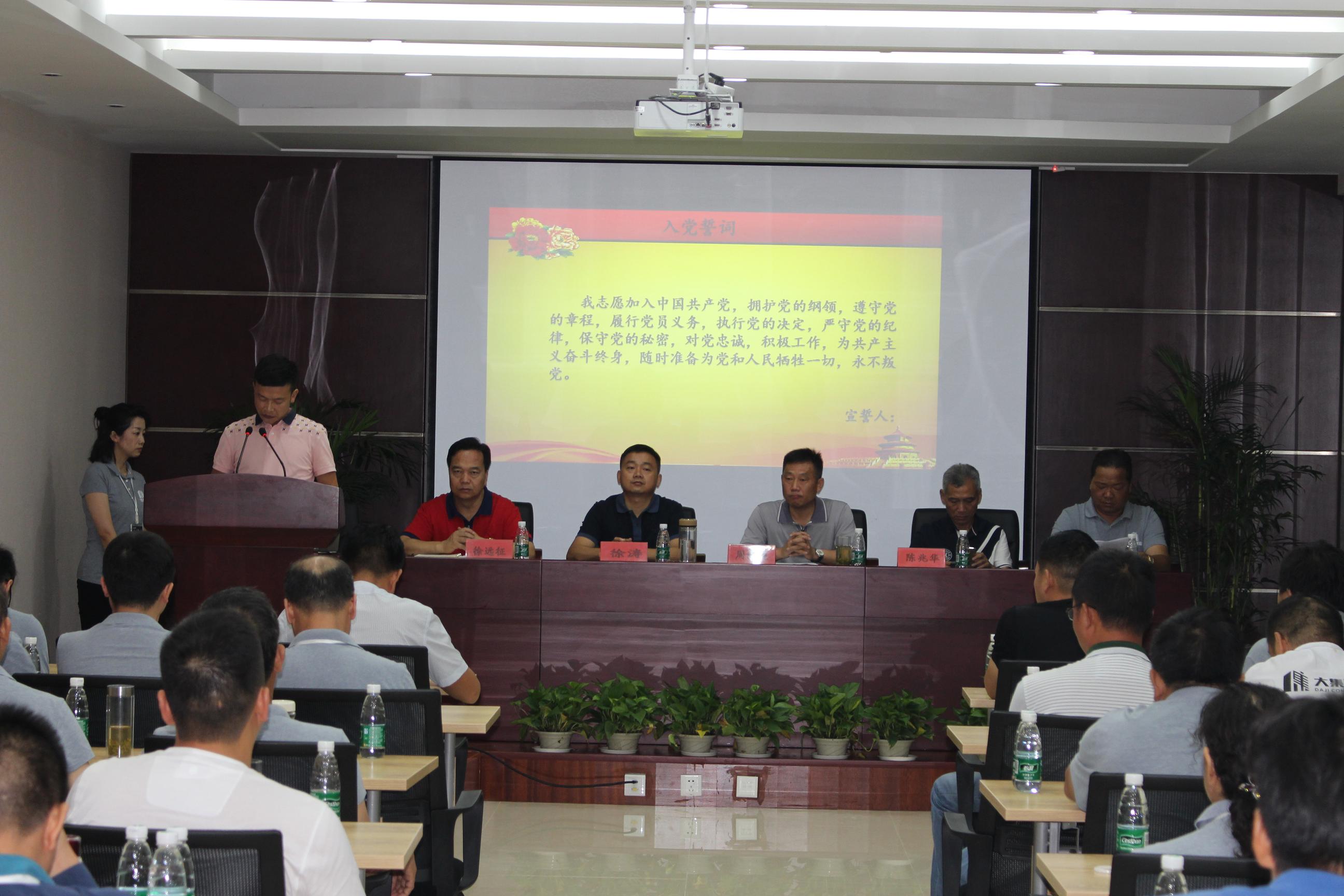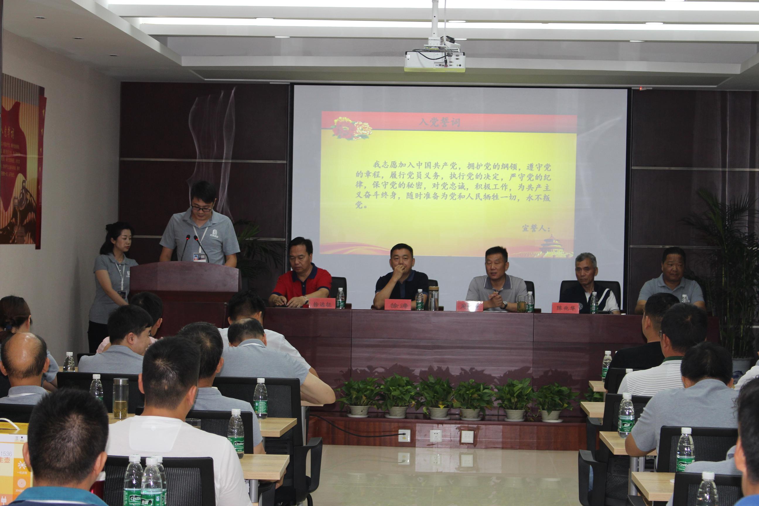 在慷慨激昂的大合唱《沒有共產(chǎn)黨就沒有新中國》中,會議拉開了序幕,熱血沸騰的歌聲結(jié)束后,由集團(tuán)黨委副書記徐遠(yuǎn)征同志帶領(lǐng)新黨員做入黨宣誓,老黨員重溫入黨誓詞。