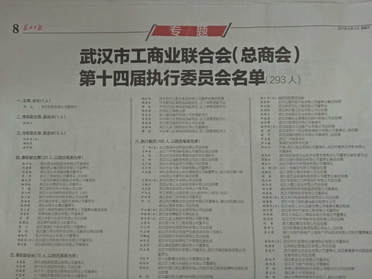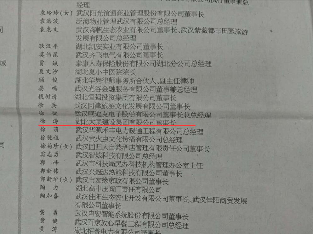 8月8日,武漢市工商業(yè)聯(lián)合會第十四次代表大會隆重召開,湖北大集建設(shè)集團董事長徐濤當(dāng)選為總商會第十四界執(zhí)行委員!