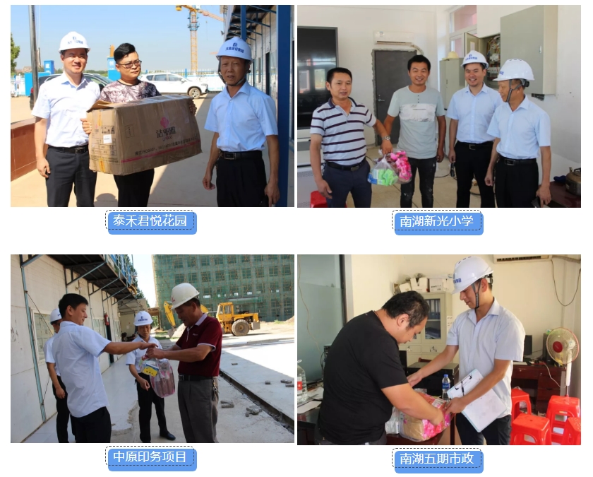 為切實做好夏季施工現(xiàn)場防暑降溫工作,7月19日,集團(tuán)公司開展一線慰問送清涼活動,前往各項目部發(fā)放毛巾、風(fēng)油精、人丹、十滴水等防暑降溫物資,同時要求各項目負(fù)責(zé)人要從以人為本、安全生產(chǎn)的高度,做好高溫防暑措施,合理安排好夏季高溫作業(yè)時間,確保項目一線員工安度酷暑。