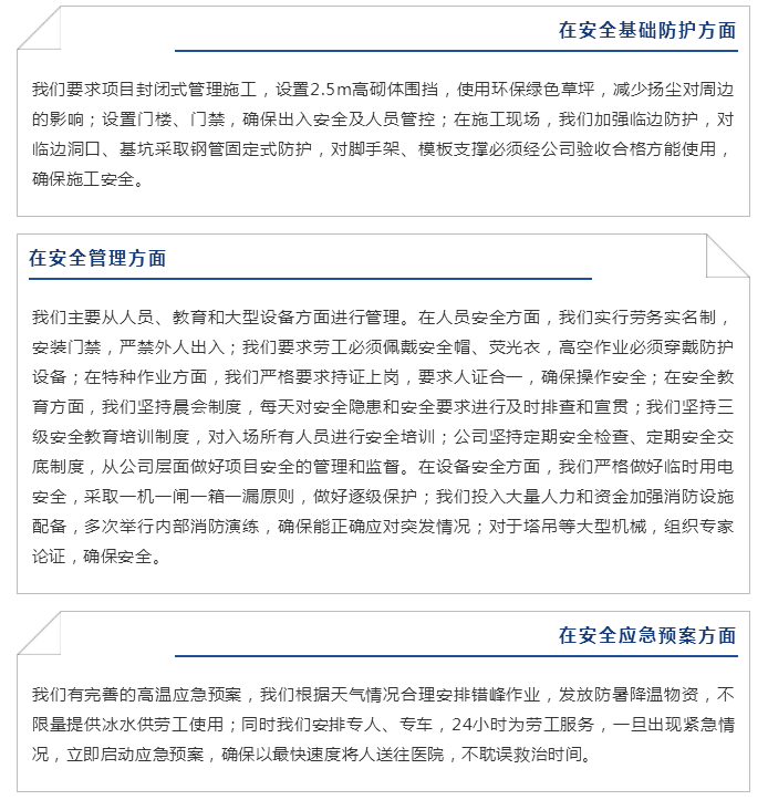 抓工程技術(shù),必須一絲不茍;抓工程進(jìn)度,必須一天不讓;抓工程質(zhì)量,必須一點情面不講;抓工程安全,必須一刻也不放松。這四個必須是集團(tuán)公司精益求精、鑄造精品的法寶。未來,集團(tuán)公司將繼續(xù)將安全作為警鐘紅線,將品質(zhì)作為立業(yè)之本,全力做好每一個工程項目!