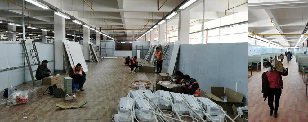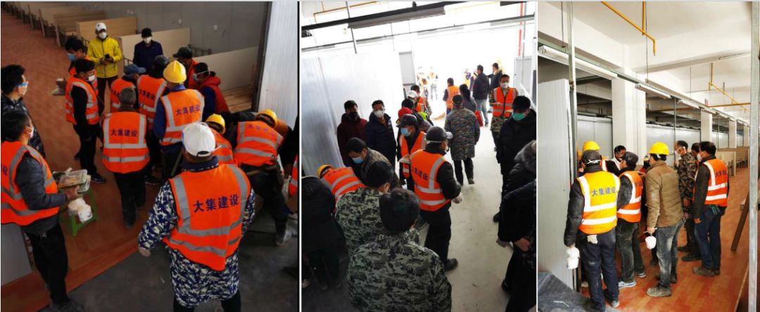 2月15日一早,在接到承建方艙醫(yī)院的緊急任務(wù)后,董事長徐濤火急召集全體項目經(jīng)理部署改建工作,進(jìn)行現(xiàn)場勘測。由于本次任務(wù)很重,改造現(xiàn)場主要集中在3-5樓,包括護(hù)士站及病房共計12000多平,1600個床位,以及隔斷墻、廁所及配套設(shè)施。