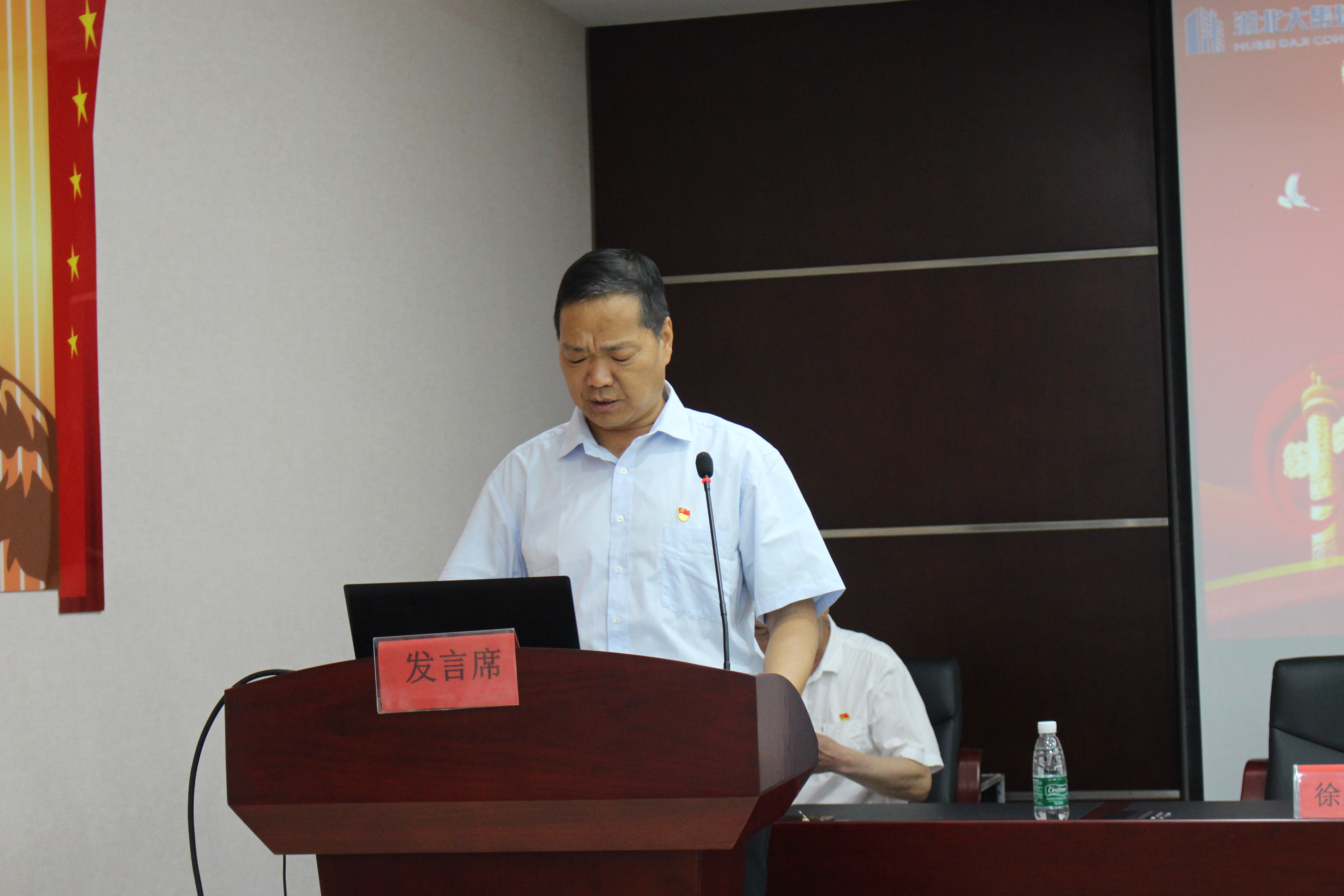 集團(tuán)黨委副書(shū)記徐家富同志宣讀中共湖北大集建設(shè)集團(tuán)有限公司黨委《關(guān)于表彰優(yōu)秀黨員的決定》。