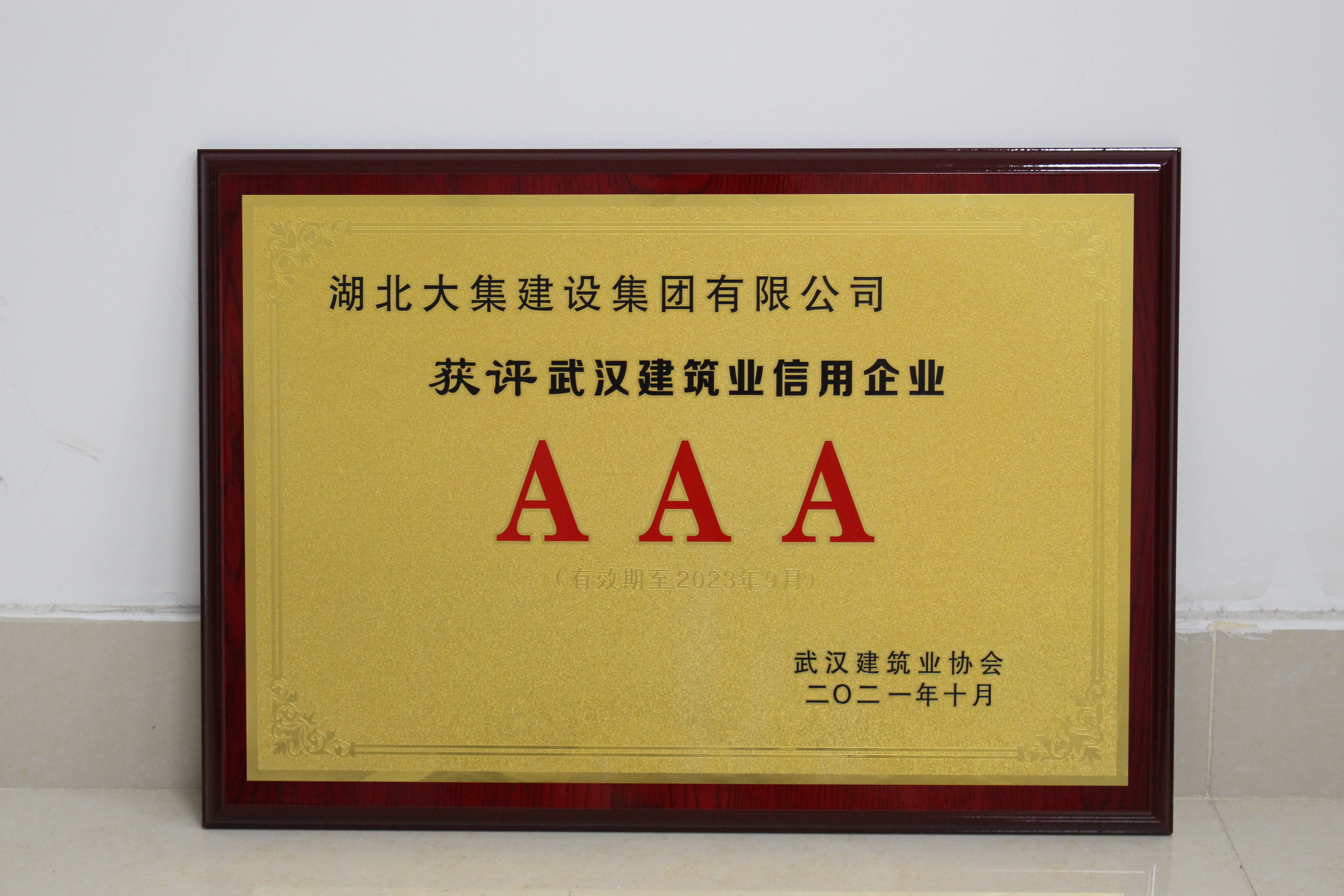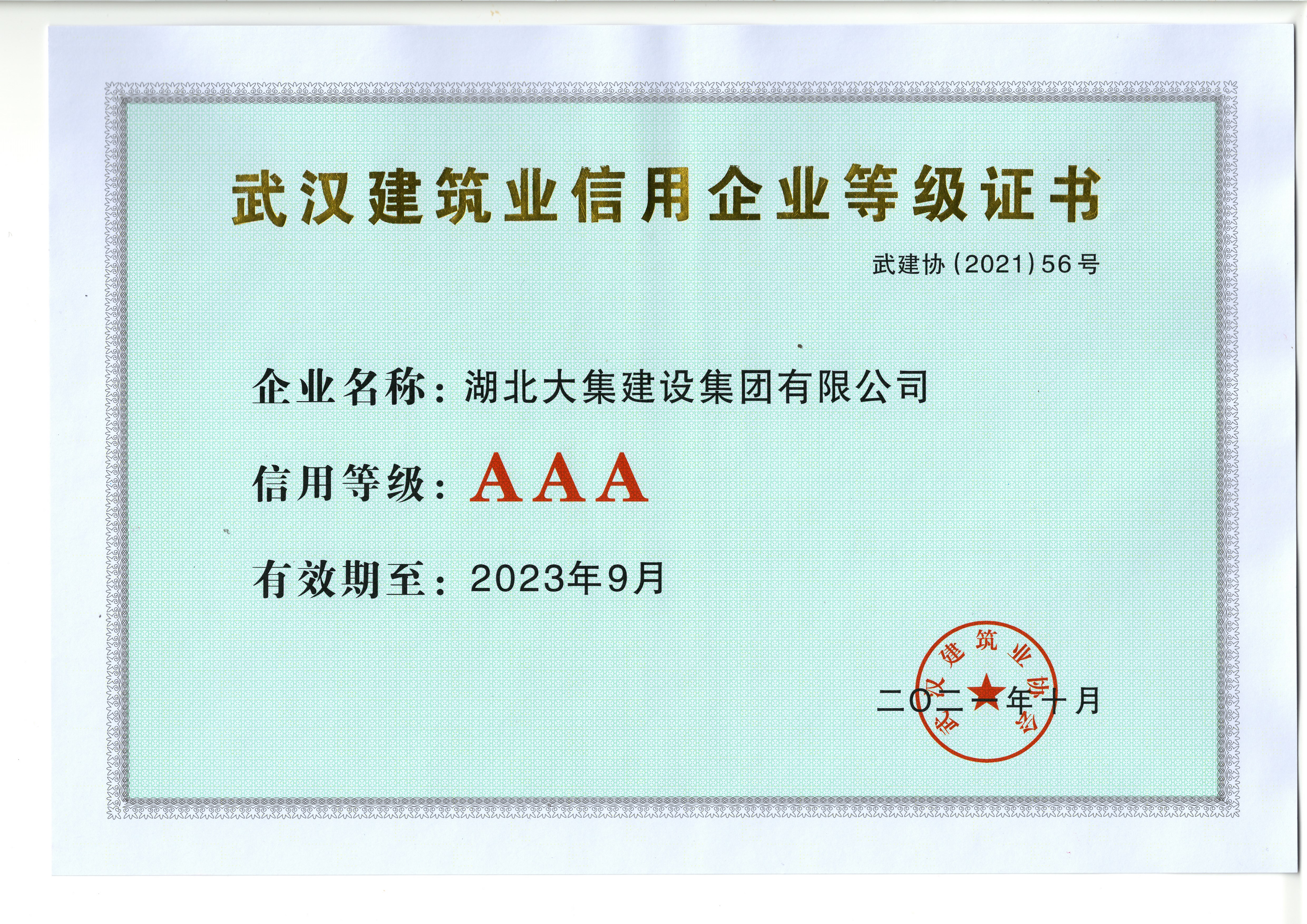 近日,武漢市建筑業(yè)協(xié)會(huì)發(fā)布2019-2020年度信用企業(yè)評價(jià)結(jié)果,湖北大集建設(shè)集團(tuán)再次獲評“武漢建筑業(yè)AAA信用企業(yè)”。