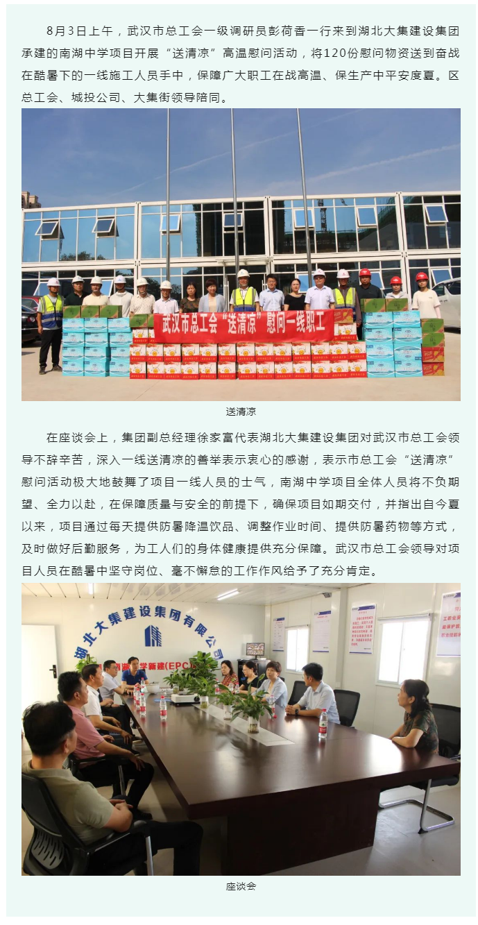 武漢市總工會(huì)“送清涼”慰問南湖中學(xué)項(xiàng)目一線人員