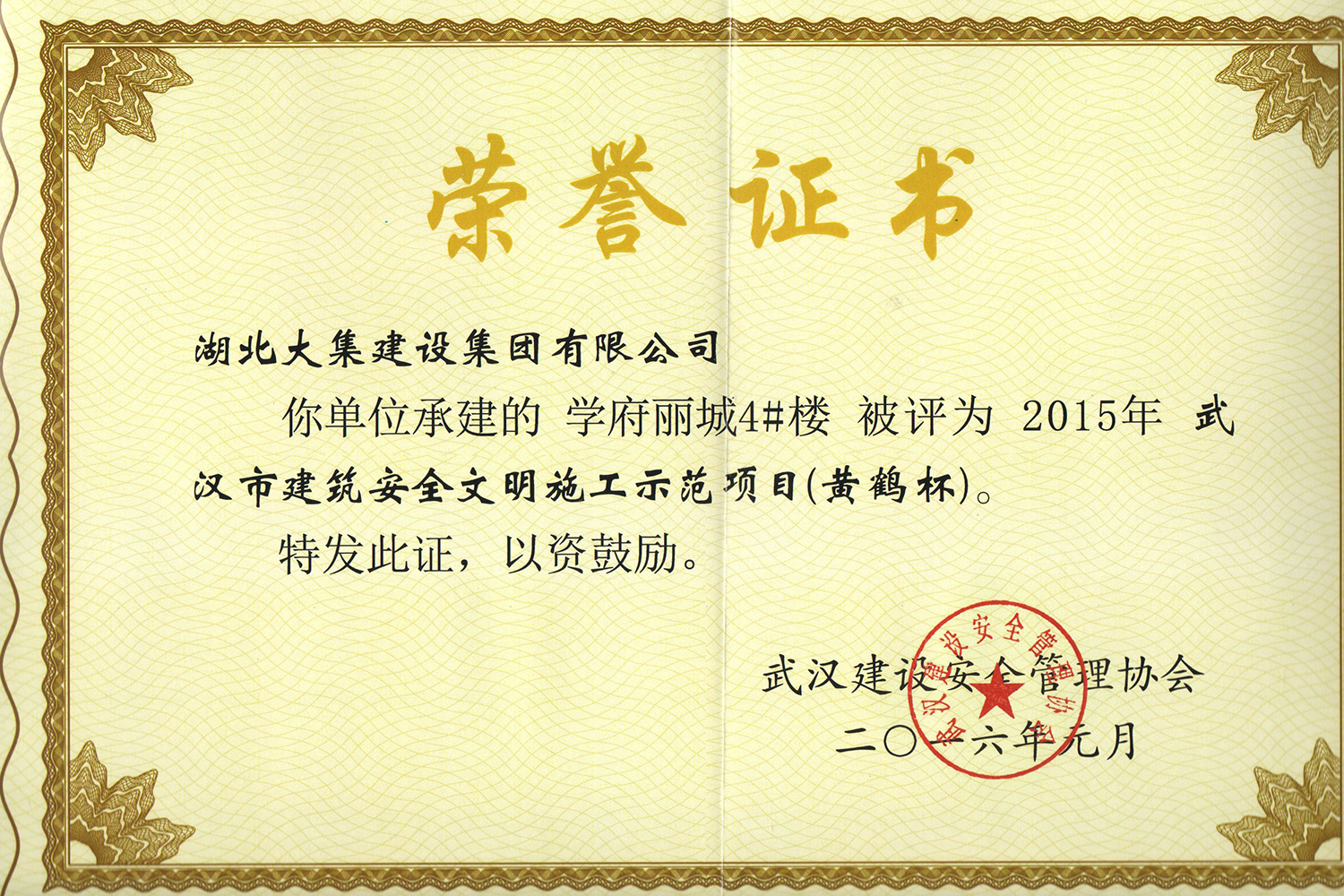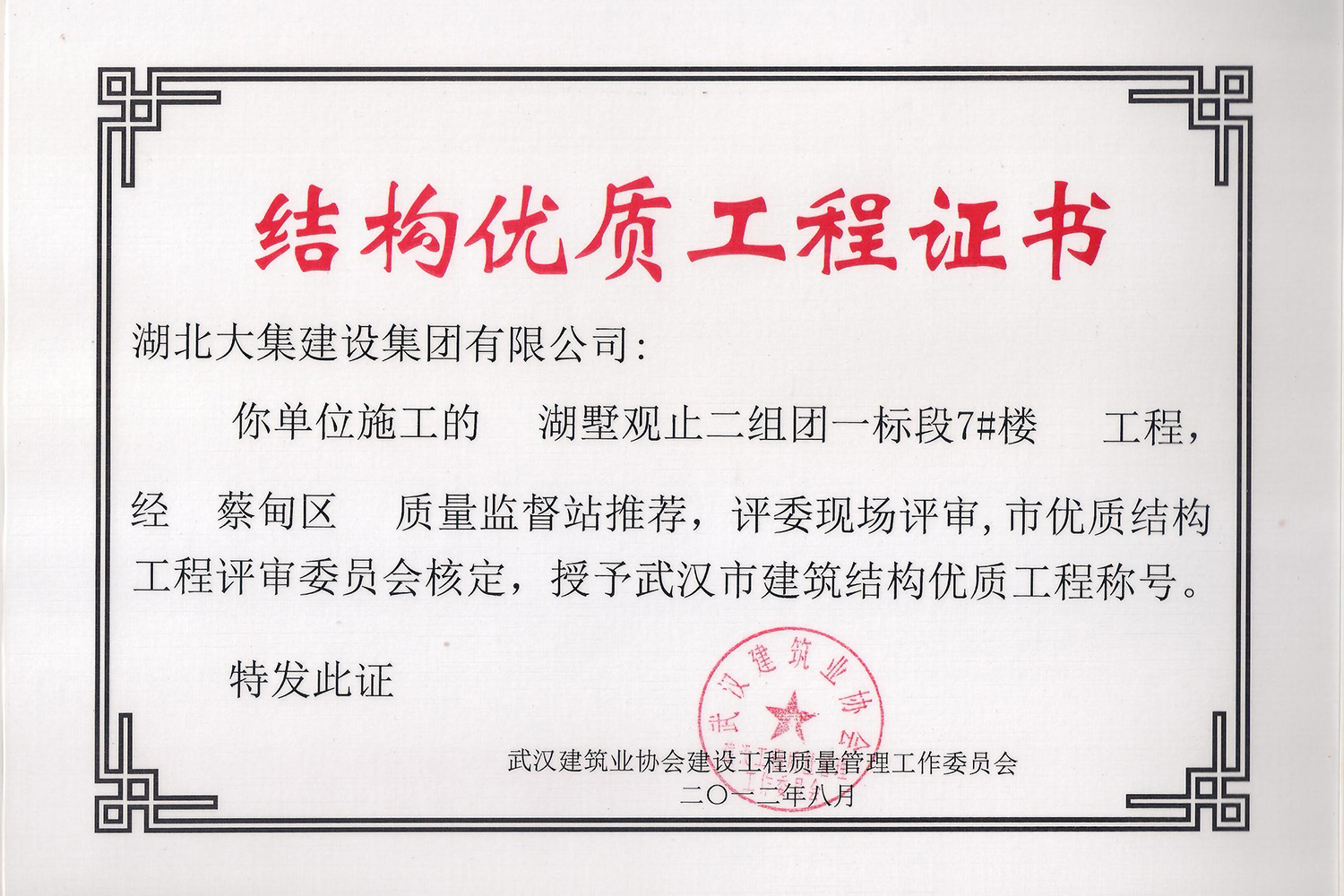 集團(tuán)秉持“安全是紅線,質(zhì)量是品牌,文明施工是形象”的企業(yè)宗旨,不斷加強(qiáng)全面管理,注重提高自身素質(zhì),以完美的履約、優(yōu)良的質(zhì)量、滿意的服務(wù),贏得了信譽(yù)。近年來,湖北大集建設(shè)集團(tuán)先后與中石化集團(tuán)、中鐵上海工程局、中建八局、中鐵十二局、碧桂園集團(tuán)、世茂集團(tuán)、綠地集團(tuán)等央企、國企、地方標(biāo)志性建設(shè)單位合作,先后承建了“碧桂園知音豪庭”項(xiàng)目、“碧桂園光谷云境”項(xiàng)目、“大集G區(qū)蓮溪花園”項(xiàng)目等多個高層住宅小區(qū);承建了世茂龍灣46#、47#、48#地塊、花博匯桃李春風(fēng)二期等多個精品高端別墅群項(xiàng)目;承建了“南湖中學(xué)”、“南湖小學(xué)”、“南湖幼兒園”、“博奧幼兒園”等多個教育配套項(xiàng)目;承建了“孝感英眾超算終端科技產(chǎn)業(yè)園”、“鴻盛華全球航空服務(wù)產(chǎn)業(yè)園”、“盟盛汽車產(chǎn)業(yè)園”、“中原印務(wù)晶毅”等多個具有特殊設(shè)備安裝需求的鋼、混結(jié)構(gòu)工業(yè)廠房項(xiàng)目;承建了“常福商務(wù)廣場”等大型商業(yè)綜合體;承建了后官湖綠道二期、三期,常貴路西延伸段、黃星大道等多條大型道路市政項(xiàng)目;自主開發(fā)了“聚盛晶尚”住宅項(xiàng)目,改善人居環(huán)境,引領(lǐng)綠色棲居新領(lǐng)域;所有工程嚴(yán)格執(zhí)行施工作業(yè)全過程質(zhì)量、安全管理,多個項(xiàng)目被省、市級監(jiān)管單位授予“省結(jié)構(gòu)優(yōu)質(zhì)”、“省安全文明施工現(xiàn)場”、“市結(jié)構(gòu)優(yōu)質(zhì)”、“市安全文明施工示范項(xiàng)目”、“樣板工地”等榮譽(yù)稱號。