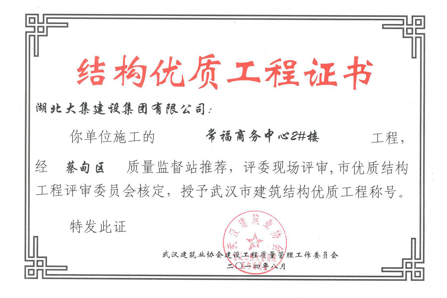 • 實(shí)現(xiàn)綜合建安產(chǎn)值、房建施工和市政施工產(chǎn)值的 “三超”,同年,公司“建筑工程施工總承包”資質(zhì)升級為壹級,“鋼結(jié)構(gòu)工程專業(yè)承包”資質(zhì)升級為叁級。