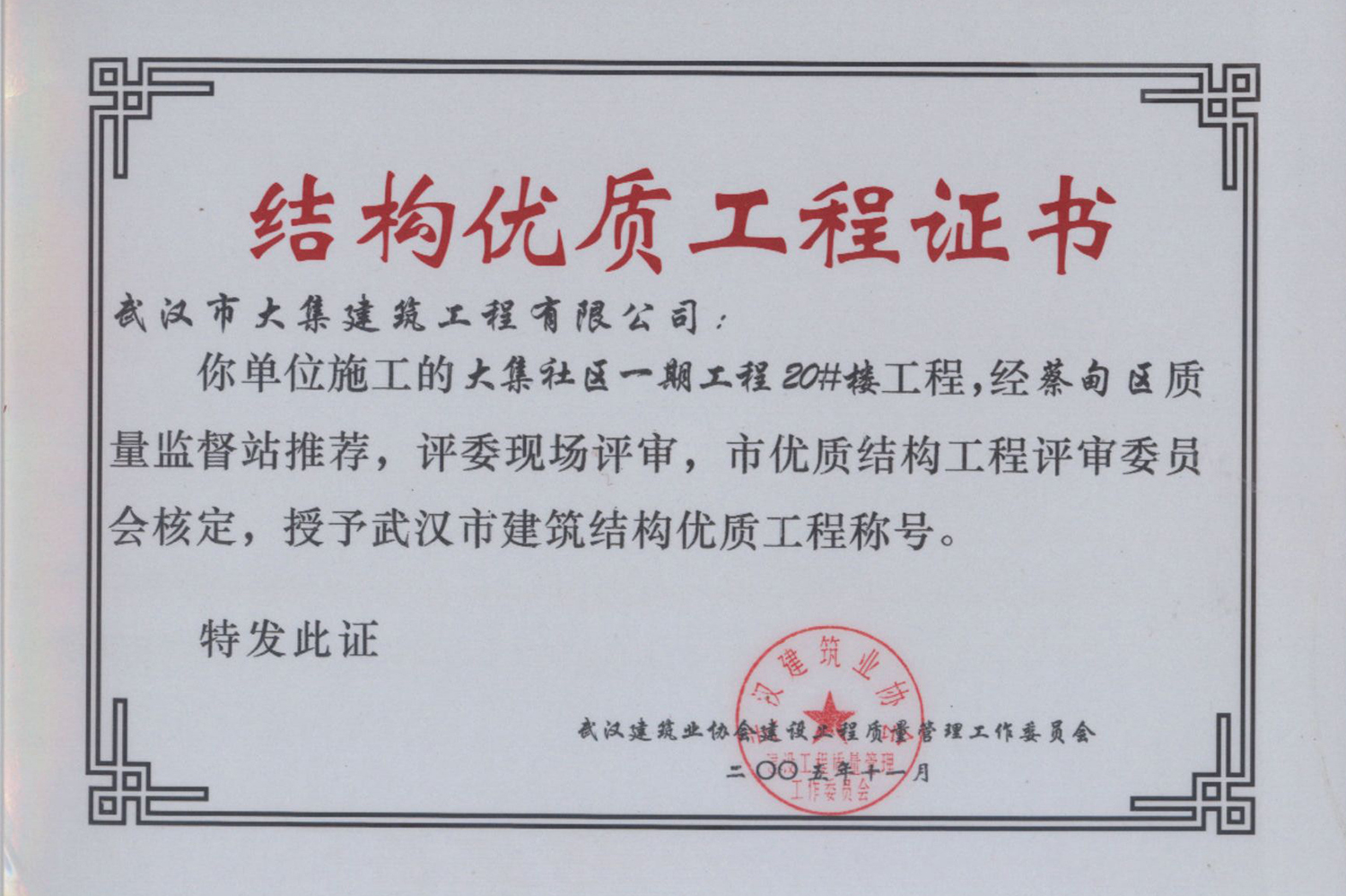 • 公司注資2400萬,完成“武漢市蔡甸區(qū)第十三建筑工程公司”的企業(yè)改制,集團(tuán)前身“武漢市大集建筑工程有限公司”成立。