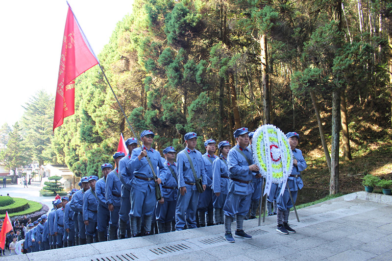 在井岡山革命烈士陵園,學(xué)員們懷著崇高的敬意向革命英烈敬獻花圈,肅立默哀,感悟先烈追求理想信念,不怕犧牲的崇高品質(zhì)。