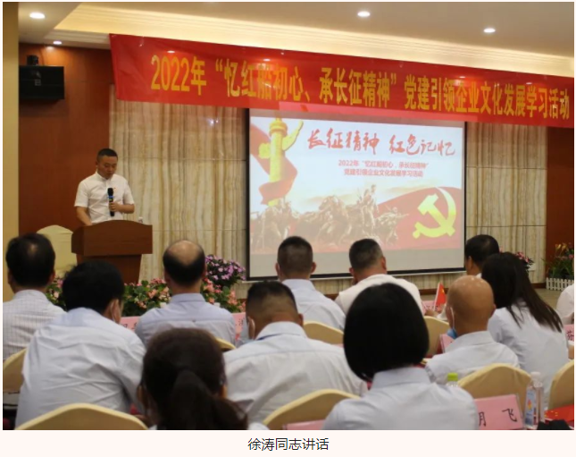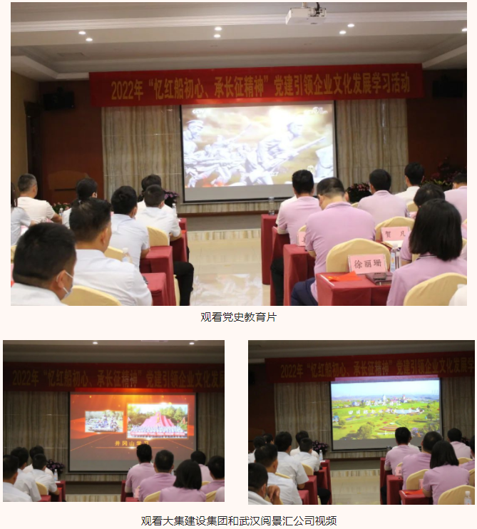 為慶祝建黨101周年,進(jìn)一步推進(jìn)黨史學(xué)習(xí)教育,增強(qiáng)隊(duì)伍凝聚力、向心力與戰(zhàn)斗力,湖北大集建設(shè)集團(tuán)聯(lián)合武漢閱景匯公司于6月16日上午共同開展2022年“憶紅船初心,承長征精神”黨建引領(lǐng)企業(yè)文化發(fā)展學(xué)習(xí)活動(dòng),兩家公司的全體黨員、入黨積極分子以及中高層領(lǐng)導(dǎo)、優(yōu)秀骨干員工參加了學(xué)習(xí),會議由湖北大集建設(shè)集團(tuán)黨支部書記徐遠(yuǎn)征主持。