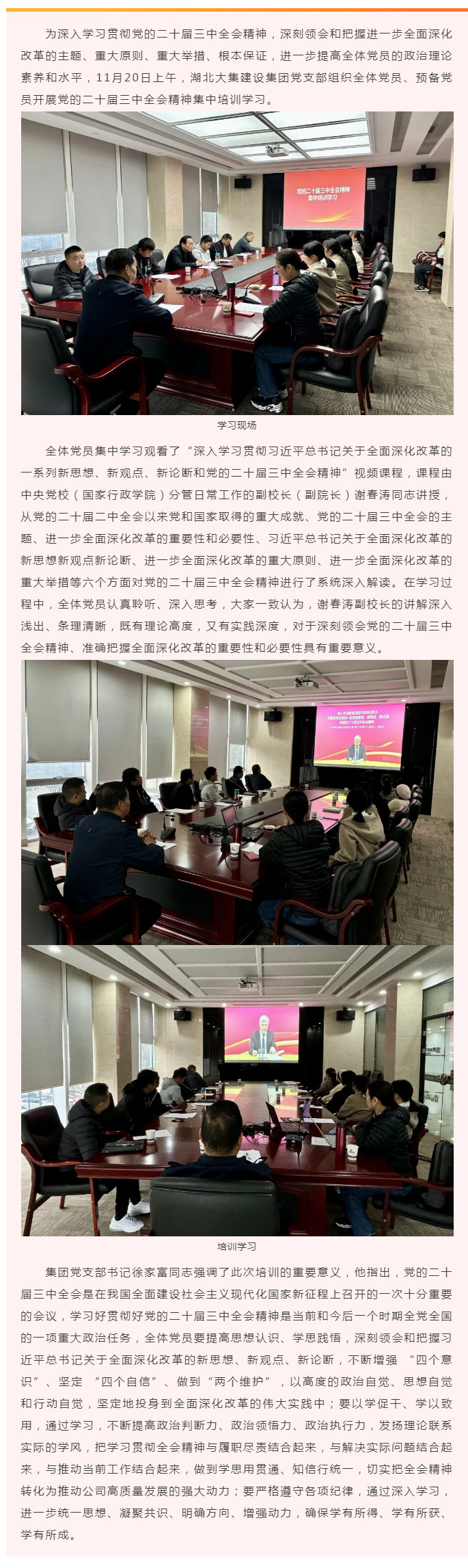 湖北大集建設(shè)集團黨支部開展黨的二十屆三中全會精神集中培訓(xùn)學習