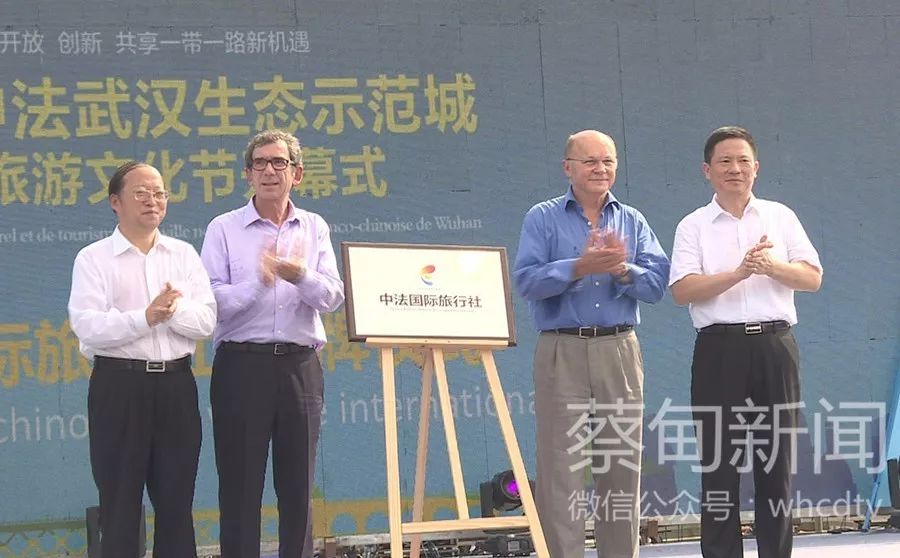 法國駐華大使黎想、法國生態(tài)與團結化轉型部城市可持續(xù)發(fā)展協(xié)調人克里斯汀?樂維、副市長龍良文、蔡甸區(qū)委書記、中法武漢生態(tài)示范城管委會主任劉子清共同為“中法國際旅行社”揭牌。