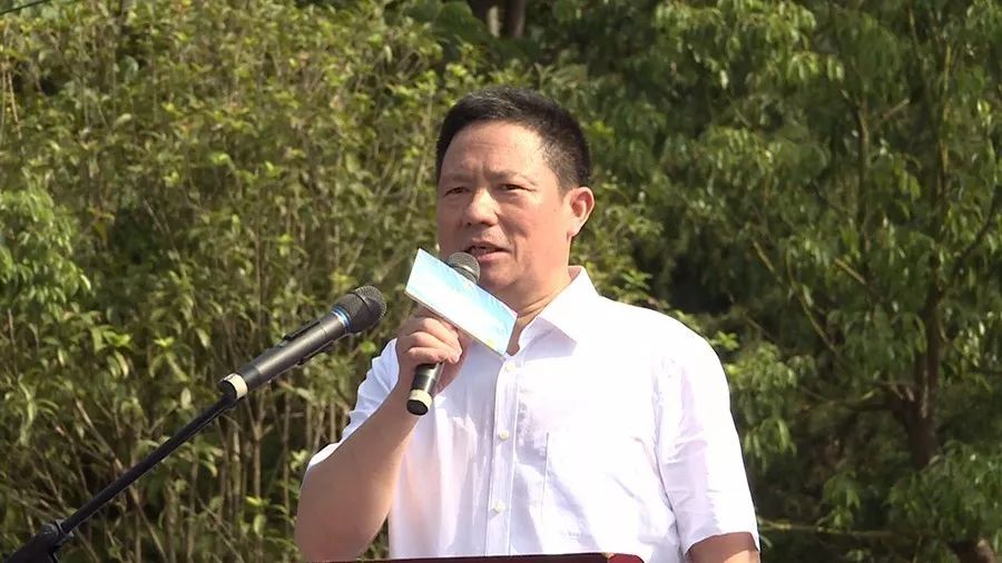 出席開幕式的領導和嘉賓共同上臺參加“疊翠流金”啟幕儀式。