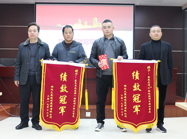 會(huì)議開始,行政部公布集團(tuán)公司2019年第三四季度項(xiàng)目績效考核結(jié)果,并由集團(tuán)董事長徐濤、總經(jīng)理徐遠(yuǎn)征為第三四季度項(xiàng)目績效冠軍頒發(fā)錦旗和獎(jiǎng)金。