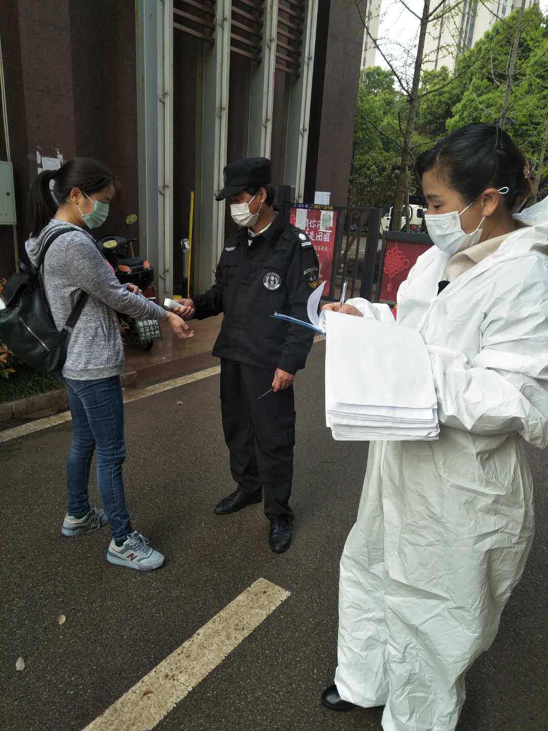 即使沒有隔離衣,沒有防護(hù)服,只有一只最普通的口罩,但只要一個(gè)通知,所有的物業(yè)人員——保潔員、保安員、維修員、客服員,不分崗位,都義無反顧地投入到戰(zhàn)斗第一線。