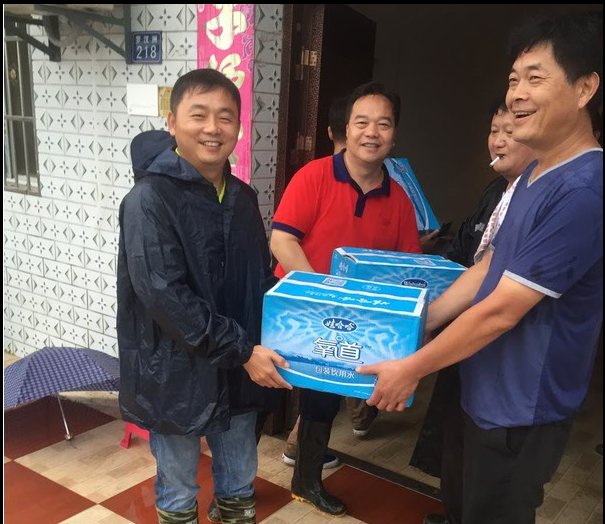 “天災(zāi)無情,人間有愛”。2016年7月19日,湖北大集建設(shè)集團有限公司在董事長徐濤和總經(jīng)理徐遠(yuǎn)征率領(lǐng)下,副總經(jīng)理徐家富、項目經(jīng)理徐斌、梁前松等公司領(lǐng)導(dǎo)和骨干力量代表集團公司的心意冒雨來到了受災(zāi)嚴(yán)重的蔡甸區(qū)沉湖大堤。